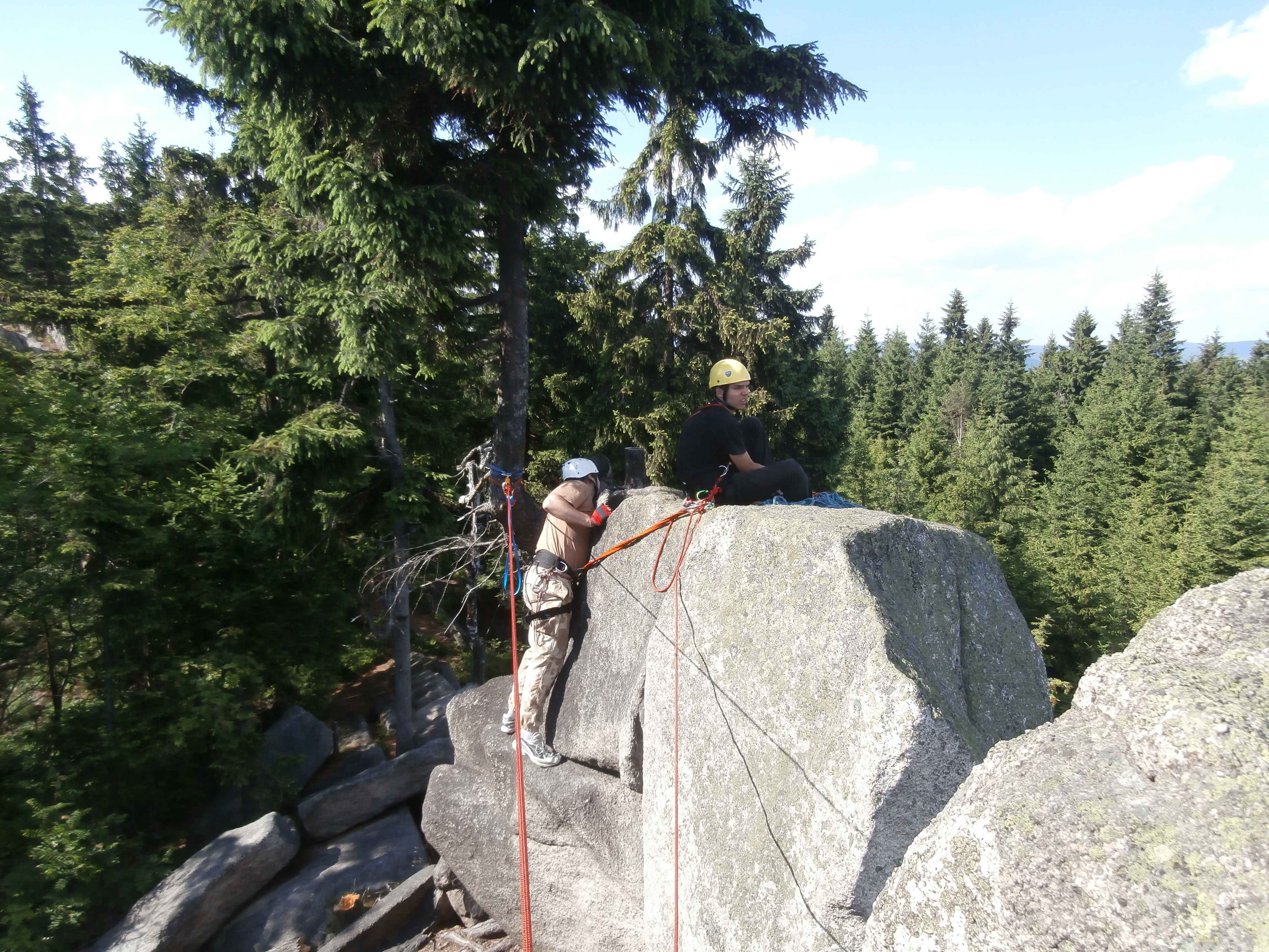 V pátek 27.6. jsme cvičili na Dopadech lanovou techniku a v sobotu 28.6. jsem lezli na Čertových skalách u Černé Studnice
